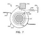 ディスペンサー240は、好ましくは、ホイール244の第1方向への回転を制限するための手段を含む。特に、ホイール244は、半径方向に突出する歯252を含み、該歯252は、装置ハウジングの第1固定部材20aに接触して、ホイール244の第1方向への回転を制限するように配置される。ばね248は、ホイール244と装置ハウジングの第2固定部材20dとの間に伸び、通常、歯252を第1固定部材20aに対して引く。  The