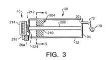 図3〜5を参照して、リザーバ30には、該リザーバの開放端部と端壁34との間に延在する側壁32が設けられる。端壁34は、内腔72を通って該装置10の出口組立体70へと連通するための出口36を含む。リザーバ30はまた、リザーバ30内での回転のために取り付けられるねじ込み親ねじ202と、該親ねじにねじ込まれて受けられるプランジャー204とを含む。親ねじ202は、側壁32と同軸状に配置され、リザーバ30の端壁34へと伸長する。プランジャー204及びリザーバ30は、プランジャー204と親ねじ202との間、及び、プランジャー204とリザーバの側壁32との間にシールが形成されるように適合され、そのため、リザーバ30の端壁34に向かうプランジャー204の運動は、流体を出口36を通って出口組立体70へと押しやる。  With reference to FIGS. 3-5, the