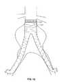 半径方向膨張手段は必要である。なぜなら、本発明は、シースを取り除くことで完全に自動的に膨張するものではないからである。このことから、送達用シースを取り除いた後であっても、ステントが完全に膨張する前にデバイスを調整することができる。他の膨張手段の選択肢には、体温よりも高温度で自己膨張可能な材料で作られたステントの使用が含まれる。このような材料は、膨張を望んだときに留置場所に熱を加え、デバイスを体温より高い温度にまで温めることで、シースが取り除かれた後、自己膨張が行われるようにする場合に用いることができる。このような熱的駆動による膨張の場合、留置した後、シースを取り除いた上で、熱を与えて膨張を制御することが検討される。このような場合、上記の材料は、バルーン膨張デバイスなしで、または、バルーンと組み合わせて本発明で用いられる。(例えば、熱の付加の前の、初期の膨張は、バルーンを用いて行われる。)本発明の重要な点は、ステントおよび関連するデバイスの部分が、可剥性シースが取り除かれた後、完全に自動的に膨張するものではない、という点である。 A radial expansion means is necessary. This is because the present invention does not expand completely automatically by removing the sheath. This allows the device to be adjusted before the stent is fully expanded, even after the delivery sheath has been removed. Other expansion means options include the use of stents made of materials that are self-expandable at temperatures above body temperature. Such materials should be used to allow self-expansion after the sheath has been removed by applying heat to the detention site when desired to expand and warming the device above body temperature. Can do. In the case of expansion by such a thermal drive, after indwelling, removing the sheath and then applying heat to control the expansion is considered. In such cases, the above materials are used in the present invention without a balloon inflation device or in combination with a balloon. (For example, initial inflation prior to the application of heat is performed using a balloon.) An important aspect of the present invention is that after the peelable sheath is removed, the stent and associated device portions are removed. The point is that it does not expand completely automatically.
