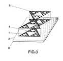 また、励振パッチ(1)上に1つの非励振パッチ(8)が配置される積層構造を用いた、新規な構成に基づくもう1つの好適な実施形態(図3)を使用することも可能である。図3では、マルチレベルで成形された素子を用いた例示的な積層構造が、励振パッチ(1)及び非励振パッチ(8)に使用されている。しかしながら、マルチレベルで成形され又は空間充填して成形された他の幾何学的形状を使用することも可能である。図3に示した構造は独創的であり、本発明の本質的な部分を構成する。 It is also possible to use another preferred embodiment (FIG. 3) based on a novel configuration using a laminated structure in which one non-excitation patch (8) is arranged on the excitation patch (1). is there. In FIG. 3, an exemplary stacked structure using multi-level shaped elements is used for the excitation patch (1) and the non-excitation patch (8). However, it is also possible to use other geometric shapes molded in multiple levels or shaped with space filling. The structure shown in FIG. 3 is original and forms an essential part of the present invention.