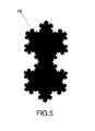 図5は、ボウネクタイ形状のコッホ曲線(19)に基づいた空間充填型の幾何学的形状のもう1つの例を示す図である。このような幾何学的形状は、その輪郭によって複数のフラクションモードをサポートする。マイクロストリップアレーにこのパッチを利用することは新規なものであり、本発明の本質的な部分を構成する。 FIG. 5 is a diagram showing another example of a space-filling geometric shape based on a bow tie-shaped Koch curve (19). Such a geometric shape supports multiple fraction modes by its contour. The use of this patch in a microstrip array is novel and forms an essential part of the present invention.