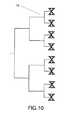 図10は、新規構成であるマルチレベルで成形された8個のパッチ素子にてなるリニアアレーのための共通給電ネットワークの概略図(14)である。 FIG. 10 is a schematic diagram (14) of a common power supply network for a linear array composed of eight patch elements formed in a multi-level which is a new configuration.