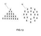 図12にもう1つの好適な実施形態を示し、ここでは、マルチレベルで成形された複数の素子又は空間充填して成形された複数の素子で形成されるか、又は両者の組み合わせによって形成されることが可能な、円形形状のリニアアレーを示している。図13は2つの異なるアレー配置で形成されたもう1つの好適な実施形態を示し、(17)は三角形形状の配置を示し、(18)は正方形形状の配置を示している。上記配置は、例えば、マルチレベルで成形され又は空間充填して成形された素子によって形成されることが可能であり、又は両方の幾何学的形状の組み合わせによって形成されることも可能である。 Another preferred embodiment is shown in FIG. 12, where it is formed from a multi-level molded element, a space-filled molded element, or a combination of both. A circular linear array is shown which is possible. FIG. 13 shows another preferred embodiment formed with two different array configurations, (17) showing a triangular configuration and (18) showing a square configuration. The arrangement can be formed, for example, by a multi-level molded or space-filled element, or it can be formed by a combination of both geometric shapes.