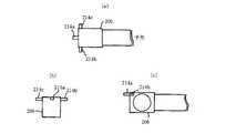 アーム201は、1軸203、2軸205、3軸207、4軸209、5軸211及び6軸213と、これらの各軸を順に連結すると共にこれらの各軸を駆動する関節202、204、206、208、210、212とを有して構成されている。距離センサ214a、214b、214cは、前述の如く、上記構成のアーム201における3軸207の関節206に取付けられている。詳細には図9(a)、(b)、(c)に示すように、関節206の左右に距離センサ214b、214cが取付けられている。従って距離センサ214aは距離206の後方の占位する構造物との距離を検出し、距離センサ214b、214cは関節206の左右方向に占位する構造物との距離を各々検出する。