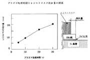前記ラウンドの加工形状は、RFバイアスの他に、O2ガス、N2ガスの添加量によっても制御することができる。エッチングの過程では、前記CHF3ガスがプラズマによって解離され、炭素、水素、フッ素のラジカルやイオンを発生する。これらのイオンやラジカルは、エッチング加工を施すシリコン窒化膜12のマスクと反応して反応生成物を生成する。蒸気圧の高い反応生成物は、真空容器から排気口を介して排出されるが、蒸気圧の低い反応生成物はエッチングの加工面に付着する。この付着物は、エッチングに対する保護膜としての機能をもち、エッチングの加工速度を抑制する。極端に厚い場合には、エッチングが停止することもある。通常、加工面に対してイオン照射の少ない加工側面に厚く付着する。CHF3ガスをエッチングガスとして使用した場合、付着物の多くは、カーボンを含んだ化合物からなり、O2ガスを添加することにより、このカーボンをCxOyの反応により蒸発させ加工面の付着膜を低減できる。また、N2ガスを添加した場合、窒化物を生成させ加工面の付着膜を増加することができる。このため、O2やN2の添加量によって、マスク角部14の側面のエッチング速度を制御することができ、マスク角部14の加工形状を制御することができる。使用するエッチングガスや流量、使用するエッチング装置によっても、付着物の量、付着膜の除去効果が変わるため、加工する溝形状の仕様、使用するエッチング装置に合せ、O2ガスまたはN2ガス添加量の適性値を求めることが好ましい。The round processing shape can be controlled by the addition amount of O2 gas and N2 gas in addition to the RF bias. In the etching process, the CHF3 gas is dissociated by plasma to generate carbon, hydrogen, fluorine radicals and ions. These ions and radicals react with the mask of the