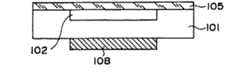 この発明による第1のDNA増幅装置の一具体例の平面図を図1に、また図1に示すDNA増幅装置のA−A線断面図を図2にそれぞれ模式的に示す。この装置では、無機もしくは有機基板 101の上面に反応セル 102並びに流路 103および 104が形成され、さらにその上面に透明基板 105が接合されている。また、流路 103には弁 105が、流路 104には弁 106がそれぞれ設けられ、さらに基板 101の反応セル 102が形成された面の裏面に接して発熱体 108が設けられている。無機もしくは有機基板 101としては、例えば、シリコンウェハ基板、ガラス基板、アルミ、ステンレススティール等の無機基板、およびフッ素樹脂、エポキシ、ポリカーボネート等の有機基板が用いられる。反応セル 102並びに流路 103および 104は基板 101の材質に応じて様々な方法で形成することができ、例えば、基板 101としてシリコンウェハ基板を用いる場合には、シリコンウェハ上にプラズマエッチング等によって所定の形状の溝を形成した後、ガラス基板等の透明基板を陽極接合すればよい。反応セル 102はプレーナ状に形成されている。この反応セルは、その大きさを含めて、必要とする容量に応じて種々の形状が選択可能である。例えば、容量を 3μlとする場合には、縦長 5mm、横長 3mmおよび深さ 200μmとすればよいが、反応溶液の温度をより精密に制御するためには深さは浅いほうが好ましい。発熱体 108も、DNA増幅反応に必要な熱サイクルを遂行し得るものであれば特に限定されるものではなく、例えば、電熱ヒータ、ペルチエ素子、赤外線ランプ等を挙げることができる。  A plan view of a specific example of the first DNA amplification device according to the present invention is schematically shown in FIG. 1, and a cross-sectional view taken along line AA of the DNA amplification device shown in FIG. 1 is schematically shown in FIG. In this apparatus, a