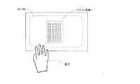 前記信号処理手段30の構成についてより詳細に説明する。信号処理手段30は、電磁波受信手段20で受信した電磁波信号をデジタル信号に変換処理する信号変換手段31と、デジタル信号に基づき対象物の位置情報及び物性情報を夫々算出する位置情報算出手段32及び物性情報算出手段33と、位置情報及び物性情報を夫々記憶する位置情報記憶手段34及び物性情報記憶手段35と、対象物の位置情報及び物性情報に関する時系列パターンデータが事前に格納された時系列パターン記憶手段36と、逐次算出され位置情報記憶手段34及び物性情報記憶手段35に格納される対象物の位置情報及び物性情報の時系列データと時系列パターン記憶手段36に格納されている位置情報及び物性情報の時系列パターンとを照合して、該当する時系列パターンが確認された場合に表示手段40に対する所定の入力信号を生成する入力信号生成手段37とで構成されている。The configuration of the signal processing means 30 will be described in more detail. The signal processing unit 30 includes a signal conversion unit 31 that converts the electromagnetic wave signal received by the electromagnetic wave reception unit 20 into a digital signal, a position information calculation unit 32 that calculates position information and physical property information of the object based on the digital signal, and Physical property information calculation means 33, position information storage means 34 and physical property information storage means 35 for storing position information and physical property information, respectively, and time series in which time series pattern data relating to the position information and physical property information of the object is stored in advance The position information of the object and the time information of the physical property information and the position information stored in the time series pattern storage means 36, the pattern storage means 36, the position information storage means 34 and the physical property information storage means 35 which are sequentially calculated And the time series pattern of the physical property information are compared, and when the corresponding time series pattern is confirmed, It is composed of an input signal generating means 37 for generating a constant input signal.
