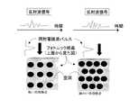 本実施例において、ユーザーは図7に示すようなグローブ71を手に装着する。グローブ71の一部または全部に反射材6が付着されている。本実施例における反射材6には、プラスチックに周期的な空洞を形成したフォトニック結晶を用いる。グローブ71の各指4aから4eの一部または全部に付着している反射材6には、夫々異なる構造のフォトニック結晶を採用し、構造的特徴から各反射材6の反射特性を生成する。図11に、異なる構造を有する二つのプラスチック材料を反射材6に採用した場合に検出される照射電磁波パルスに対する反射波信号の時間波形の一例を示す。図のように空洞を異なる周期で作製した場合、その空洞の周期のピッチ、空洞のサイズ、形状などによって反射波信号の振動周期、及びピーク電力が異なって検出される。従って、夫々の構造を制御することで反射特性も制御できるため、反射波信号の特徴(すなわち反射材6の物性情報)を検出することによって反射材6を独立に区別できる。こうして、反射材6を装着している指を特定して、どの指がどれくらい変位したのかという情報を検出できる。また、前記グローブ71には、例えば圧電素子などを含む圧覚センサ付圧覚発生手段(不図示)が各指先近くの部分に備えられており、無線で入力信号がここに提供されて、指先に圧覚を与える。In this embodiment, the user wears a glove 71 as shown in FIG. The reflector 6 is attached to part or all of the globe 71. As the reflector 6 in this embodiment, a photonic crystal in which a periodic cavity is formed in plastic is used. The reflective material 6 adhering to some or all of the fingers 4a to 4e of the globe 71 employs photonic crystals having different structures, and the reflection characteristics of the reflective materials 6 are generated from the structural features. FIG. 11 shows an example of a time waveform of a reflected wave signal with respect to an irradiation electromagnetic wave pulse detected when two plastic materials having different structures are adopted for the reflector 6. When the cavities are manufactured with different periods as shown in the figure, the oscillation period of the reflected wave signal and the peak power are detected differently depending on the pitch of the cavities, the size and shape of the cavities, and the like. Therefore, since the reflection characteristics can be controlled by controlling each structure, the reflection material 6 can be independently distinguished by detecting the characteristic of the reflected wave signal (that is, the physical property information of the reflection material 6). In this way, it is possible to identify the finger wearing the reflective material 6 and to detect information about how much the finger is displaced. In addition, the glove 71 is provided with pressure-sensing means (not shown) with a pressure sensor including, for example, a piezoelectric element in a portion near each fingertip, and an input signal is provided here wirelessly to the fingertip. give.