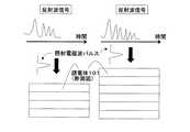 また、上述した様に、各指毎に生成された反射波の信号は、反射材6である誘電体多層膜の構造(層数)、材料によって異なる。例えば、電磁波発信器が電磁波パルスを照射した場合には、図10に示すように反射エコーパルスの数が誘電体101の積層数の増加に従って増加するため、反射エコーパルスの数を時間サンプリングによって計数すれば、反射波を生成した物質の構造的特徴(誘電体多層膜の積層数)、すなわち各対象物の物性情報を検出できる。Further, as described above, the reflected wave signal generated for each finger differs depending on the structure (number of layers) and material of the dielectric multilayer film that is the reflector 6. For example, when the electromagnetic wave transmitter emits an electromagnetic wave pulse, the number of reflected echo pulses increases as the number of laminated layers of