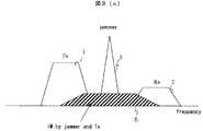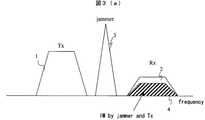 送信信号1の周波数をftx、妨害信号3の周波数をfjamとすると、受信チャネルに生じる送信信号1と妨害信号3による相互変調妨害4の周波数fiは、式(1)となる。