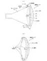そこで、放射特性補正レンズとして誘電体レンズを利用し、その調整作業を効率よく行えるようにするには、請求項7に記載のように、放射特性補正レンズ(つまり誘電体レンズ)を、レンズの表面から裏面にかけて複数に分割することで、その分割したレンズ部材毎に特性を調整できるようにし、この放射特性補正レンズ(つまり誘電体レンズ)をホーンアンテナの開口端に配置する際には、その分割された複数のレンズ部材を接合した状態でホーンアンテナの開口端に配置するようにするとよい。 Therefore, in order to efficiently use the dielectric lens as the radiation characteristic correction lens and perform the adjustment work, the radiation characteristic correction lens (that is, the dielectric lens) is attached to the lens as described in claim 7. By dividing into multiple parts from the front surface to the back surface, the characteristics can be adjusted for each of the divided lens members, and when this radiation characteristic correction lens (that is, a dielectric lens) is disposed at the opening end of the horn antenna, A plurality of divided lens members may be joined at the opening end of the horn antenna.