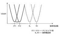 第2周波数帯における周波数は、任意に設定することができる。この場合、外部から制御信号が供給される制御信号入力端子を備え、この制御信号入力端子に供給された制御信号の電圧値に応じた周波数が前記同調回路において同調するように構成する。In one embodiment, the second frequency band is a use frequency band of a digital TV that is tuned by the tuning circuit, and the first frequency band is a use frequency band of a mobile phone that is not tuned by the tuning circuit.