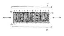 組成物に印加される磁場の方向は、組成物中の繊維状充填材14に応じて適宜設定される。例えば、図2においては、磁場発生装置の一対の磁極17が型16の下方及び上方に配設されている。このとき、一対の磁極17の間には、成形体11の厚さ方向の沿うように直線状の磁力線18が発生する。繊維状充填材14が反磁性体である場合、組成物に磁場が印加されることにより、繊維状充填材14は、磁場の方向と反対方向に磁化されて磁力線18に沿って配向される。また、繊維状充填材14の結晶構造の結晶方位に依存して繊維状充填材14の磁化率が異方性を持つ場合、繊維状充填材14は、磁化率の異方性に従って配向される。 The direction of the magnetic field applied to the composition is appropriately set according to the