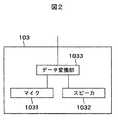 携帯端末101は、データ信号を入力するデータ入力部107と、メッセージを表示するディスプレイ部102と、音声信号の入出力を行う音声処理部103と、上記データ信号や音声信号の変復調処理を行って、ゲートウエイ装置(基地局(交換機))401との間で無線通信を行うための通信部104と、利用者固有の指紋などに代表される生体情報を読み込むための生体情報入力部105と、前記ディスプレイ部102、音声処理部103、通信部104、生体情報入力部105が相互にデータをやり取りするための端末制御部106とを有し、プリペイド式携帯電話サービス等を受けることにでき、さらに利用者固有の電話番号に関する情報を記憶したUSIMカード等(記憶部)108の差し替え可能に構成される。ここで、音声処理部103は、図2に示すように、音声を入力するマイク1031と、音声を出力するスピーカ1032と、上記マイク1031からの入力音声信号を入力音声データに変換して例えば端末制御部106に入力し、例えば端末制御部106から得られる出力音声データを上記スピーカ1032への出力音声信号に変換するデータ変換部1033とを有して構成される。生体情報入力部105は、図3に示すように、利用者本人の指紋などに代表される生体情報を読み込むスキャナ部1051と、該スキャナ部1051から読み込まれた生体情報を生体データに変換して例えば端末制御部106に出力するデータ変換部1052とを有して構成される。なお、データ入力部107及び音声処理部103のマイク1031などは、携帯端末がサービスを受けるためのデータ信号や音声信号を入力する入力部を構成する。また、上記通信部104は、更に、生体情報入力部105で読み込まれた利用者本人の生体情報に関するデータおよびUSIMカード等(記憶部)108に記憶された利用者の電話番号に関する情報もゲートウエイ装置(基地局(交換機))401へ無線通信によって送信されることになる。 The