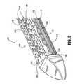 複数の接触パッドのそれぞれが、電気エネルギーを少なくとも複数の接触パッドそれぞれに移送および/または接触パッドそれぞれから発散するための電力線に電気的に接続されている。針収容スロット内に収容し得る複数のフィンガーのそれぞれ、複数の針のそれぞれ、および接触パッドのそれぞれが電気エネルギー源に電気的に接続されている。The floor member includes a plurality of contact pads arranged in a longitudinal array associated with each of the plurality of deployable needles. Each of the plurality of fingers that can be received in the needle receiving slot, each of the plurality of needles, and each of the contact pads is considered to be made of a conductive material. Each of the plurality of fingers that can be accommodated in the needle accommodation slot includes a plurality of contact pads that are electrically connected to a power line for transferring electrical energy to the plurality of fingers that can be accommodated in the needle accommodation slot. , Electrically connected to power lines for transferring and / or dissipating electrical energy to at least each of the plurality of contact pads. Each of the plurality of fingers that can be received in the needle receiving slot, each of the plurality of needles, and each of the contact pads is electrically connected to an electrical energy source.