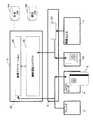 図1及び図2は、生体認証機構として、手のひらの静脈認証機構を用いた図書館の貸出システムを例に示す。図1及び図2に示すように、図書館の窓口には、図5以下で説明する手のひら撮像装置1と、テンキー90と、カードリーダ9と、RF−IDアンテナ6と、これに接続された業務端末(例えば、パーソナルコンピュータ)2とが設けられている。  FIGS. 1 and 2 show a library lending system using a palm vein authentication mechanism as an example of a biometric authentication mechanism. As shown in FIGS. 1 and 2, the library window includes a