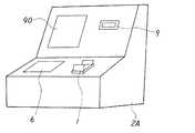 図11は、本発明の他の実施の形態の端末装置の構成図であり、自動貸出機を示している。自動貸出機2Aは、アンテナ6、撮像装置1、タッチパネル90、カードリーダ9を有する。このタッチパネル90に、テンキーイメージが表示され、図1、図2のテンキーの役目を果たす。又、タッチパネル90が、誘導メッセージの表示や、図1、図2の端末2のデイスプレイに表示される画面を表示し、利用者の操作により、登録、認証、貸し出し処理が進行する。** Other embodiments **