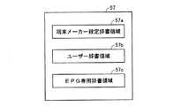 一方、テレビ放送においては、地上波デジタル放送の実用化に伴い、放送中あるいは放送予定の番組情報であるEPG(Electronic Program Guide:電子番組ガイド)データの配信が普及しはじめている。EPGデータは、デジタルテレビ放送においては、放送波に重畳して配信されており、地上波デジタル放送が受信可能な据え置き型のテレビ等において、番組表の生成・表示に利用されている。また、EPGデータは、EPGデータ配信サーバからネットワーク経由で配信することも可能である。従って、上述した携帯電話端末では、ネットワーク経由で配信されるEPGデータを取得し、番組表の生成に利用することも可能である。 On the other hand, in television broadcasting, with the practical application of terrestrial digital broadcasting, distribution of EPG (Electronic Program Guide) data, which is program information being broadcast or scheduled to be broadcast, has begun to spread. In digital television broadcasting, EPG data is distributed by being superimposed on a broadcast wave, and is used for generating and displaying a program guide in a stationary television or the like capable of receiving terrestrial digital broadcasting. EPG data can also be distributed from the EPG data distribution server via a network. Therefore, the mobile phone terminal described above can also acquire EPG data distributed via a network and use it for generating a program guide.