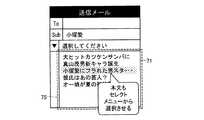 また、それまで視聴していた番組に関するメッセージ交換システムの利用が開始できたとしても、ユーザはメッセージとして送信する文字列をキーボードなどの入力手段を使って入力する操作を強いられるという問題があった。特許文献1にあるように、EPGデータを電子メールに挿入できれば、キーボードを繰り返し押下することなく番組情報を他のユーザに送れるという点で便利であるが、単にEPGデータを電子メール本文に挿入するだけでは、番組についての感想などユーザが創作するメッセージの入力に利するところはなかった。 In addition, even if the use of a message exchange system related to a program that has been viewed until then can be started, there is a problem that the user is forced to input a character string to be transmitted as a message using an input means such as a keyboard. . As disclosed in