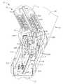 特に、図41を参照すると、曲げられた板バネ738(点線で図示)は、クロージャートリガー26内に挿入された第1の端部740、および発射トリガー28内に挿入された第2の端部742を有する。第1の端部740と第2の端部742の間の湾曲部分744は、トリガー26とトリガー28が互いに離れるように付勢している。曲げられた板バネ738は、発射トリガー28が垂れ下がってクロージャートリガー26の使用を妨げないようにして、多少であるが、引戻し引張バネ706が発射トリガー28から外れないようにしている。 In particular, with reference to FIG. 41, a bent leaf spring 738 (shown in dotted lines) includes a