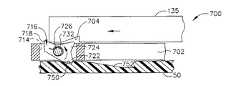 図41‐図52において、外科ステープル止め/切断器具10における発射駆動装置134の移動の直接的な補助に加えて、または代替として、発射の際の発射駆動装置134に対する引き戻す力を解除することによる発射補助を組み込むことができる。したがって、外科医は、発射トリガー28に対して大きな力を加える必要がなく、しかも、発射の後の発射駆動装置134の自動引き戻しの利点も維持している。このために、補助機構700を外科ステープル止め/切断器具10に組み入れた。この補助機構700では、シャトル702が、矩形プレート135とともに移動するようにその左側に近接して整合している。矩形プレート135は、その左上面に沿って遠位端部の近くに逆ノッチ704を有する。発射トリガー28に直接連結されるのではなく、固定端部(不図示)がピストルグリップ24に取り付けられている引戻し引張バネ706が、可動端部708を有する。この可動端部708は、プーリー712に巻かれてシャトル702の近位端部に取り付けられたケーブル710に連結されている。プーリー712は、シャトル702の長手方向の移動に整合し、シャトル702の最も近位側の位置よりも近位側にある。 41-52, in addition to or as an alternative to directly assisting movement of the