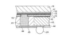 図9に示す第2実施形態に係る半導体装置40において、半導体基板11、半導体基板11上の絶縁層12、配線・電極パッドの層13、開口14、裏面絶縁膜15、表面側絶縁膜16、接着層17、支持体18については、第1実施形態で説明した要素と同じものであり、重複説明を省略する。  In the