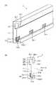 このような有機EL照明パネル用取付け装置600に有機EL照明パネル700を取り付ける場合、長手方向の一方端の開放口611から、奥壁部601と側壁部602−1、602−2と前壁部603−1、603−2とにより形成される断面形状略コ字状の一対の空間621−1、621−2に矩形平板状の有機EL照明パネル700における両側端701−1、701−2をそれぞれ嵌め込み、この一対の空間621−1、621−2を長手方向に配設位置まで有機EL照明パネル700を滑らせることによって、有機EL照明パネル700は、有機EL照明パネル用取付け装置600に取り付けられる。そして、複数の有機EL照明パネル700を有機EL照明パネル用取付け装置600に取り付ける場合では、同様の手順で複数の有機EL照明パネル700を順に送り込むことによって、複数の有機EL照明パネル700は、有機EL照明パネル用取付け装置600に取り付けられる。