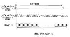 図5に示すように、直接書込みのみの表示のときは、1水平期間中に表示パネルの1ライン分の表示データがラッチクロックφ1に同期して順次第1ラッチ回路33に取り込まれ、第1ラッチ回路33に格納された1水平ライン分の表示データは1水平期間毎に1個のラッチクロックφ2に同期して第2ラッチ回路34に一度に移される。そして、第2ラッチ回路34にラッチされた表示データが駆動回路37へ転送されてセグメント駆動信号が生成されて出力される。ラッチクロックφ1,φ2はタイミング制御回路30から供給される。  As shown in FIG. 5, when only direct writing is displayed, display data for one line of the display panel is sequentially taken into the