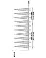 ここで、基地局は、ユーザ端末の受信状況やセル内での位置に応じて、ユーザ端末へのデータ送信に用いる時間フレームの選択を行う機能を有する。また、基地局は、ユーザ端末がセル内で移動した場合には、ユーザ端末へのデータ送信に用いる時間フレームの割り当てを変更する機能を有する。これらの機能を実現するため、基地局は、M(Mは2以上の整数)種類の電力の時間フレームそれぞれに対応した、M種類のパイロット信号あるいは既知信号を生成し、それぞれのパイロット信号あるいは既知信号を対応する時間フレームの一部として送信する。M種類のパイロット信号の送信電力は、図11に示すように対応する時間フレームの電力と同じでもよいし、あるいは、図12に示すように時間フレームの種類には、関係なく、常に一定でもよい。ユーザ端末はパイロット信号あるいは既知信号の受信電力を測定し、測定結果に基づきフィードバック情報を生成して基地局に送信する。基地局はユーザ端末から受信したフィードバック情報に基づき該ユーザ端末に適用する時間フレームの種類を決定する。ユーザ端末に適用する時間フレームの種類の決定方法については後に後述する。 Here, the base station has a function of selecting a time frame used for data transmission to the user terminal according to the reception status of the user terminal and the position in the cell. Further, the base station has a function of changing allocation of time frames used for data transmission to the user terminal when the user terminal moves in the cell. In order to realize these functions, the base station generates M types of pilot signals or known signals corresponding to M (M is an integer of 2 or more) types of power time frames, and each pilot signal or known signal is generated. The signal is transmitted as part of the corresponding time frame. The transmission power of M types of pilot signals may be the same as the power of the corresponding time frame as shown in FIG. 11, or may be always constant regardless of the type of time frame as shown in FIG. . The user terminal measures the received power of a pilot signal or a known signal, generates feedback information based on the measurement result, and transmits it to the base station. The base station determines the type of time frame applied to the user terminal based on the feedback information received from the user terminal. A method for determining the type of time frame applied to the user terminal will be described later.