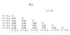In the relationship content data distance calculation step S21, the relationship content data set is input, and a distance matrix having the distance between the data as values is output. This distance matrix is used to calculate the clustering dendrogram. The distance matrix calculation method will be specifically described using the case where the relationship content data is text data such as e-mail. A word is cut out from each related content text data using a morphological analysis technique or the like, and a list of words and their appearance frequencies is created for each data. Using the created word list, all data is scored based on the degree of similarity for each data. A method such as SMART (Non-Patent Document 3) is known as a score calculation method, and when this method is used, a higher score is given to data having a higher degree of similarity to the data to be compared. The method of scoring between text data so far is a well-known technique in similar document search. The calculated score is normalized so that the score given to the data itself as the basis of comparison is 1. A value obtained by subtracting the normalized score of each data from 1 which is the maximum value is set as a distance between the data to be compared. Further, the average value of the distance of