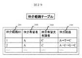 仲介経路算出ステップS2601では、仲介経路検索クエリと関係ネットワークを用いて、仲介経路検索クエリを送信したユーザと、仲介希望先の有識者ユーザとの間をつなぐ仲介経路を算出する。S2603の処理は、仲介経路算出部1205にて実行される。仲介経路算出方法としては、ネットワーク上の2ノード間の最短経路を算出する、Warshall-Floyd法(非特許文献7)などの方法がある。算出した仲介経路は、図29に示すような仲介経路テーブルによって管理される。Next, processing of the mediation route search unit 1211 will be described with reference to FIG.