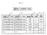 次に、図14を用いて、SIPサーバの機能を説明する。SIPサーバ901は、プレゼンス情報、サブスクライブ管理機能1401のユーザ状態管理部1402と、情報送受信機能1405のSIPメッセージ送受信部1406によって、情報端末間のメッセージを送受信する情報端末同士の通信を仲介する。また、ユーザ通信履歴管理部1403によって情報端末間の通信履歴を管理し、履歴情報送受信部1407によって、情報端末間の通信履歴をKnow-Whoサーバに通知する。情報端末間の通信履歴は、図17のSIPサーバログテーブルのような形式で管理される。1701は送信元ユーザIDである。1702は送信先ユーザIDである。1703は通信手段である。1704は通信が行われた時刻である。1705は通信の内容(テキストなど)である。 Next, the function of the SIP server will be described with reference to FIG. The