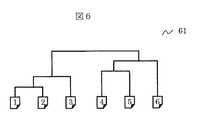 関係内容データクラスタリングステップS22では、S21で算出した距離行列を入力とし、関係内容データのクラスタリングデンドログラムを出力する。クラスタリングデンドログラムの算出方法には、階層的クラスタリング手法(非特許文献4)などを用いる。このクラスタリングデンドログラムを用いると、内容に基づいた関係内容データのクラスタを様々な大きさで作ることができる。また、あるクラスタに最も距離の近いクラスタを足すことで、クラスタをデータの類似に基づいて拡大することが可能である。図5の距離行列を入力として算出したクラスタリングデンドログラムを図6に示す。図6における1から6のラベルのついたデータが、図5の距離行列の行と列の要素であるデータ1から6である。図6のクラスタリングデンドログラムは、図20に示すクラスタリングデンドログラムテーブルによって管理される。2001はクラスタIDを表し、2002は親クラスタIDを表し、2003は子クラスタIDを表し、2004は兄弟クラスタIDを表す。図6のデンドログラムにおける例では、データ1で構成されるクラスタID=1のクラスタ(クラスタ1)は、親クラスタが、データ1,2で構成されるクラスタ7、兄弟クラスタが、データ2で構成されるクラスタ2であり、子クラスタは持たない。また、クラスタ7は、親クラスタが、データ1,2,3で構成されるクラスタ8、子クラスタが、と、データ2で構成されるクラスタ2、兄弟クラスタが、データ3で構成されるクラスタ3である。