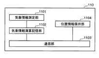 例えば車両等の移動体、携帯電話等の携帯機器に情報源装置110を搭載すればよい。移動体や携帯機器であれば、周囲の気象情報の測定・収集が容易である。この場合、この情報源装置110の測定部1101は一定間隔で周囲の気象情報を測定・収集する。測定部1101は例えば温度計、湿度計、風速計等の周知の測定機器で構成すればよい。気象情報演算記憶部1102は測定された気象情報を用いて各種演算して、電源システム101〜105に送信するための気象情報を生成する。そして、この情報源装置110の通信部1103は、無線通信等の通信手段を利用して、その気象情報を電源システム101〜105に送信する。電源システム101〜105への送信は無線に限る必要はなく、有線通信、記録媒体を介しての通信等、気象情報を電源システム101〜105に渡すことができる手段であればよい。位置情報保持部1104は情報源装置110が搭載された移動体、携帯機器等の存在する地域等の位置情報を例えばGPS(Global Positioning System)を用いて取得し、保持するものである。移動体、携帯機器等のユーザから位置情報が入力されるものであっても構わない。保持部1104に保持された位置情報は通信部1103を用いて情報源装置110と外部と間でやり取りが可能である。 For example, the