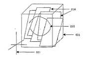 この態様によると、入手されることになる第1の映像は、例えば、診断装置002の使用を通じて収集されてもよく、それは例えばコンピュータ断層撮影(「CT」)スキャナ、磁気共鳴映像(「MRI」)スキャナ、または場合によっては陽電子放射断層撮影(「PET」)スキャナ、またはいずれかの他の同等の装置、またはいずれかの他の映像作成診断装置であってもよい。図2を参照すると、対象となる腫瘍または病変または器官010を有する患者009がその上に配置される可能性のある従来の映像台001を備えた(従来の)診断映像装置002が図式的に示されている。診断映像装置002は体組織の断層映像023または「スライス」を作成することが可能であり、そのような「スライス」は図示した対象となる腫瘍または病変または器官010でもって図4に図式的に描かれる。例えば図3に示したように、診断映像装置002のスライス入手空間017で診断映像装置002と患者009の間の相対的な動きを引き起こすことによっていくつかの診断映像023を入手することができる。図6は患者009の部分または断層面の(連続した)複数の診断映像023から形成または再構成される三次元映像027を描くものである。  According to this aspect, the first image to be obtained may be collected, for example, through the use of a