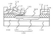 層間絶縁膜110は、例えば、PSG(Phosphorous  Silicon  Glass)膜やBPSG(Boron  PSG)膜で構成することができる。その上部に設ける配線層106は、特に限定しないが、アルミニウム,銅,チタンなどの金属を用いることができる。