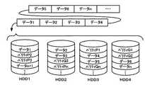 なお、RAID6方式の場合、2種類のパリティ情報を生成するその方式の違いにより、いくつかの方式が存在する。しかし、いずれの場合も、パリティ情報を2種類生成して、異なるハードディスクドライブにそれぞれ格納し、読み取りを行うこと等の影響により、RAID5方式と同等以下に性能が低下する場合があり、また、1台のハードディスクドライブが故障した時のアクセス性能も、RAID5方式の場合とほとんど変わらなく、改善されていない。 In the case of the RAID 6 system, there are several systems depending on the difference in the system for generating two types of parity information. However, in either case, the performance may be reduced to the same level or lower than that of the RAID5 system due to the effect of generating two types of parity information, storing them in different hard disk drives, and reading them. The access performance when one hard disk drive fails is almost the same as that of the RAID5 system and has not been improved.