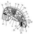 本発明の更に別の好ましい実施形態においては、第二のハウジング部分は、基準位置から装填位置へ動く動作及び再び元に戻る動作のために、第一のハウジング部分に対して枢動させることができ、これは、2つのハウジング部分を相互に結合する簡単な設計にとって有利である。 In yet another preferred embodiment of the invention, the second housing part may be pivoted relative to the first housing part for movement from the reference position to the loading position and back again. This is advantageous for a simple design in which the two housing parts are joined together.