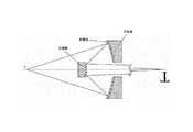 極端紫外線やX線波長域では、物質の屈折率が1に非常に近く従来型の屈折あるいは反射を利用した光学素子を使用することは極めて困難である。そこで図1に示すような屈折率が異なる2種類以上の物質を超研磨基板上に交互に積層した多層膜反射鏡が使用される。多層膜反射鏡は強め合いの干渉効果を利用した反射増加膜であることから、周期膜厚は使用波長の1/2程度の厚さに精密に制御しなければならない。EUVリソグラフィで使用される波長13nm光に対しては、モリブデン(Mo)とシリコン(Si)を交互に数十層積層することで70%近い直入射反射率が得られる。多層膜を凹面、凸面あるいは非球面基板上に成膜した反射鏡を複数枚組み合わせることで拡大あるいは縮小光学系とする。その一例として図2に多層膜鏡を成膜した凹面、凸面鏡から成るシュバルツシルド光学系の模式図を示す。 In the extreme ultraviolet or X-ray wavelength region, it is extremely difficult to use an optical element using a conventional type of refraction or reflection, whose refractive index is very close to 1. Therefore, a multilayer film reflecting mirror in which two or more kinds of substances having different refractive indexes as shown in FIG. 1 are alternately stacked on a super-polished substrate is used. Since the multilayer mirror is a reflection increasing film that uses the interference effect of strengthening, the periodic film thickness must be precisely controlled to be about half the wavelength used. For light with a wavelength of 13 nm used in EUV lithography, a direct incidence reflectance of nearly 70% can be obtained by alternately laminating several tens of layers of molybdenum (Mo) and silicon (Si). An enlargement or reduction optical system is obtained by combining a plurality of reflecting mirrors each having a multilayer film formed on a concave, convex or aspherical substrate. As an example, FIG. 2 shows a schematic diagram of a Schwarzschild optical system composed of concave and convex mirrors formed with a multilayer mirror.