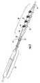 図示すると共に本明細書において説明する全ての実施形態において、種々のタイプの配線ケーブル、例えば、モノチューブ型、ルースチューブ型、センターチューブ型、リボン型等の配線ケーブルの使用が可能である。本発明と関連して用いるのに適したタイプの配線ケーブルの一例は、ノースカロライナ州ヒッコリーのコーニング・ケーブル・システムズ・エルエルシー(Corning Cable Systems LLC)から入手できるALTOS(登録商標)誘電体ケーブルである。ALTOS(登録商標)誘電体ケーブルは、地中(導管)布設と架空(係索)布設の両方が可能なように設計された軽量の光ファイバケーブルである。別の例では、配線ケーブルは、ニューカロライナ州ヒッコリーのコーニング・ケーブル・システムズ・エルエルシーから入手できるスタンダード・シングル−チューブ・リボン(Standard Single-Tube Ribbon:SST-Ribbon(登録商標))である。SST-Ribbon(登録商標)ケーブルは、ゲル入りチューブ内に識別容易な12心光ファイバリボンを収納している。それとは無関係に、配線ケーブルは好ましくは、広い温度範囲にわたって安定した性能を発揮すると共に電気通信用光ファイバと適合性があるように設計される。本明細書で用いる「光ファイバ」という用語は、あらゆるタイプのシングルモード及びマルチモード光導波路を含むものであり、かかる光導波路としては、1本又は2本以上の裸光ファイバ心線、被覆光ファイバ、ルースチューブ光ファイバ、タイトバッファ構造型光ファイバ、リボン(テープ)型光ファイバ又は現在公知であり又は後で開発される光信号を送信するための任意他の手段が挙げられる。好ましい実施形態では、配線ケーブルは、可撓性があり、引き回すのに容易であり、しかも、優先的な曲がり部を備えていない。図示すると共に本明細書で説明する全ての実施形態では、種々のタイプのテザー、例えば、モノチューブ型、ルースチューブ型、センターチューブ型及びリボン型の使用も又可能であり、テザーをケーブル組立体内の別の管状本体内に納めてもよい。 In all the embodiments shown and described herein, various types of wiring cables, such as monotube type, loose tube type, center tube type, ribbon type, etc., can be used. An example of a type of distribution cable suitable for use in connection with the present invention is the ALTOS® dielectric cable available from Corning Cable Systems LLC of Hickory, NC . The ALTOS® dielectric cable is a lightweight fiber optic cable designed to allow both underground (conduit) laying and aerial (engaged) laying. In another example, the distribution cable is a Standard Single-Tube Ribbon (SST-Ribbon®) available from Corning Cable Systems, LLC, Hickory, New Carolina. The SST-Ribbon (registered trademark) cable accommodates an easily identifiable 12-fiber ribbon in a gel-filled tube. Regardless, the distribution cable is preferably designed to provide stable performance over a wide temperature range and to be compatible with telecommunications optical fibers. As used herein, the term “optical fiber” includes all types of single mode and multimode optical waveguides, such as one or more bare optical fiber core wires, coated light. Fibers, loose tube optical fibers, tight buffer structured optical fibers, ribbon (tape) optical fibers or any other means for transmitting optical signals now known or later developed. In a preferred embodiment, the distribution cable is flexible, easy to route and does not have a preferential bend. In all embodiments shown and described herein, various types of tethers such as monotube, loose tube, center tube and ribbon types can also be used, and the tethers can be used in the cable assembly. May be contained in a separate tubular body.