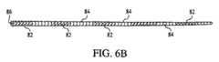 別の例として、優れた放射線不透過性及びトルク性を有する強固な材料(コバルト合金及びステンレス鋼など)でガイドワイヤを作製し、追従性を強化するよう優れた可撓性をもたらすように制御可能に加工することができる。例えば図6Aを参照すると、ガイドワイヤ80は、ガイドワイヤの先細の長さに沿って複数の細かい粒子部84と交互になっている複数の粗い粒子部(例えば、帯状部)82を含む。部分84より(例えば、直径が)大きい、粗い粒子部82は、ガイドワイヤ80に目的の硬度をもたらすことができる。細かい粒子部84は、局所的な降伏強度が比較的高いので可塑的変形を防ぐ一方で追従性を強化するためにガイドワイヤ80が湾曲できるようにする。上記の股関節ステム70と同様に、部分82及び84の寸法、分布及び度数は、例えばガイドワイヤの遠位端86の可撓性を特に大きくするなど、ガイドワイヤ80の長さに沿って変化させることができる。ガイドワイヤ80は中実(図6Aに示す)または中空とすることができる。例えば、図6Bを参照すると、部分82及び84を含むリボンをきつく巻きつけて、管腔86を画成するガイドワイヤを形成することができる。  As another example, a guidewire is made of a strong material with excellent radiopacity and torque (such as cobalt alloy and stainless steel) and controlled to provide excellent flexibility to enhance followability It can be processed as possible. For example, referring to FIG. 6A, the