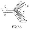 次いで、帯状部22及び接続部24の選択された部分をマスクする(工程38)。図4A、図4B及び図4Cを参照すると、帯状部22及び接続部24をマスクするための方法の実施形態が示されている。最初に、除去可能なシールド46を帯状部22及び接続部24の熱処理中に露出される部分の上に配置する(図4A)。シールド46は、例えば、接着裏面テープ、溶解可能材料(製造中に形成されるある種の再鋳造材料を除去することができる、硝酸などの酸に浸漬することによって溶解することができる炭素鋼など)、または熱処理中に溶解または昇華することができる材料(ガリウム金属など)とすることができる。シールド46は管を加熱することによって除去することができ、シールドを管から分離するように異なる熱拡張が可能なセラミック及び/またはガラスを含むことができる。それの代わりにまたはそれに加えて、シールド46を研磨などにより機械的に除去することができる。  Next, the selected portions of the belt-
