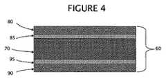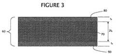圧縮応力の値はガラスコア70の厚さに対する中間層85,95及びスキン層80,90のそれぞれの厚さに関係する。5層ガラス積層基板60の最終応力は次式: