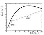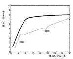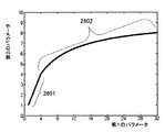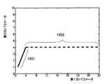 前記データベースは、前記第1のパラメータに応じた前記第2のパラメータおよび前記第3のパラメータの変化量を表す曲線として記録されており、前記所定の閾値の前後において、前記第3のパラメータの変化量を表す曲線は、滑らかな形状を有してもよい。 The database is recorded as a curve representing the amount of change of the second parameter and the third parameter according to the first parameter, and the change of the third parameter before and after the predetermined threshold value. The curve representing the quantity may have a smooth shape.