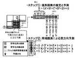 本実施例による予測符号化技術は従来技術と組み合わせて利用することにより、画像の性質に応じて高い圧縮率を実現することができると考えられる。例えば、本技術と従来技術をブロック単位で使い分けて予測符号化することにより、画像の性質に適した符号化が可能になる。従来技術としては、例えば図3(図6)に示すH.264/AVCによる画面内予測符号化方式(復号化方式)や、H.264/AVCでも利用されている画面間予測方式(符号化対象画像とは異なる画像を参照する予測方式)などを利用すると効果的である。 By using the predictive coding technique according to the present embodiment in combination with the conventional technique, it is considered that a high compression rate can be realized according to the property of the image. For example, predictive encoding using the present technology and the conventional technology separately in units of blocks enables encoding suitable for the properties of the image. As conventional techniques, for example, an intra-screen prediction encoding method (decoding method) based on H.264 / AVC shown in FIG. 3 (FIG. 6), or an inter-screen prediction method (encoding) used also in H.264 / AVC. It is effective to use a prediction method that refers to an image different from the target image.