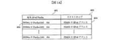 図14は、IP NetworkにあるIPv6ルータからPDSNへの経路を決めるために必要な経路テーブルであり、宛先のPrefix401と次の転送先であるネクストホップ402の情報が格納されている。宛先のPrefix401には、移動端末に割り当てた64ビットPrefix403、ネクストホップにはPDSNのIPv6アドレスが格納されることで、IP Networkから移動端末宛てのIPv6パケットがPDSNを経由して移動端末へと転送することができる。 FIG. 14 is a route table necessary for determining a route from the IPv6 router in the IP Network to the PDSN, and stores information on the