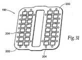 図33は、磁石アレイ区域162の間にあるスパン部材160を有するインプラント158を示す。該磁石アレイ区域は、中心線の両側に垂直(長)軸に沿って延びている。スパン部材160はそれぞれ、磁石アレイ区域162の厚さと比較して厚さが薄い。スパン部材160のより薄い横断面が前後方向の柔軟性を促進する一方、より厚い磁石アレイ区域162は中央−横方向の柔軟性を阻止する。この選択的柔軟性により、周囲生体構造の動きをよく模倣するので、インプラントは所定の位置に留まることが可能になる。  FIG. 33 shows an