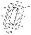 インプラントは、インプラントの応力を低減するものの、それらがデバイス形状を維持できるようにする特性を有する必要がある。所定のインプラント62の応力を制限する別の方法は、開口64を含むことである。図12に示す通り、外部固定手段、例えば縫合糸又はステープル、は、該開口を通過してインプラントを周囲組織に装着する。この装着は、組織に対して、インプラントの頭端部又は尾端部のどちらにおいてであってもよい。更に、下にある組織の厚さが許せば、(前述した)シリコーン延出部などの返しもまた、インプラント62内に組み込まれてもよい。この構造は、インプラント端部にかかる力の量を制限し、突出を招く可能性のある動きを阻止する。(前述した)丸い角部60もまた設けられており、周囲組織のより速やかな治癒を可能にする。(4. External fixing means)