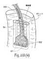 図11B(4)が示す通り、特別なへらツール300を使用して、返し又はフック67の解放を容易にすることができる。へらツール300は、インプラント54と略同一幅の遠位端302を有する。遠位端302は、返し又はフック67の鋭利な端部に係合するための大きさ及び構造になっている柔軟ポリマー材料を含む。使用において、図11B(4)が示す通り、へらツール300は、インプラントデバイス54に対してインプラント54の背後に挿入され、返し又はフック67を組織から解放するのを助ける。インプラント54の返し又はフック67が組織から解放されると、それらは遠位端302の柔軟ポリマー材料を捉える。へらツール300及び装着されたインプラント54は、図11B(5)が示す通り、もはやポケットPから容易に除去することができる。ポケットPから除去されると、返し又はフック67を遠位端302から解放することができ、返し又はフック67上を覆って保護カバー69を取り付け戻すことができる。インプラント54は、必要に応じて、前述した方法でポケット内へ再配置するよう再び準備される。  As FIG. 11B (4) shows, a
