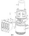 充填バルブ180のバルブ部材190は、駆動アセンブリによってバルブアクチュエータ182に結合することが可能であり、駆動アセンブリは、バルブ部材190のギアと噛み合う下部ギア192と、ディスペンサモジュール54の下方部分から、バルブアクチュエータ182が装着されている、その上方部分へと延びる駆動シャフト193と、駆動シャフト193の上端に取り付けられた上部ギア194と、バルブアクチュエータ182に取り付けられた上部ギア195を含む。上部ギア194および105は、バルブアクチュエータ182が通電されるバルブ部材190が回転するように、相互係合されている。  The